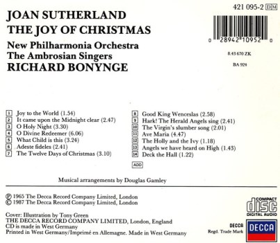 JOAN SUTHERLAND / NEW PHILHARMONIA ORCHESTRA / THE AMBROSIAN SINGERS / RICHARD BONYNGE
