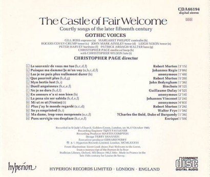 The castle of Fair welcome: Courtly songs of the later fifteenth century