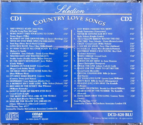 Selection: country love songs
