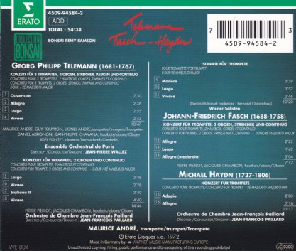 Georg Philip TELEMANN \ Johann-Friedrich FASCH \ Michael HAYDN (Maurice Andre', Guy Touvron, Lionel Andre', Jean-Pierre Wallez, Jean-Francois Paillard)
