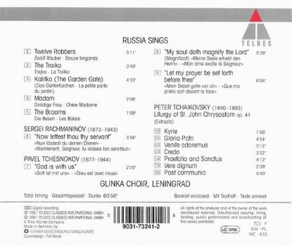 Sergei RACHMANINOV / Peter TCHAIKOVSKY / Pavel TCHESNOKOV / various (Glinka Choir of Leningrad)