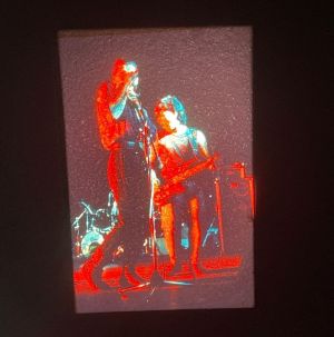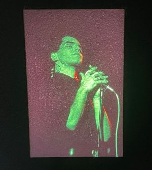 Note: Fotografo Mauro Bassi - Foto scattate al festival dell'Unità di Cremona il 09 luglio 1985 durante il tour di "Desaparecido" - Per prova proiettate su muro rustico e quindi non risultano perfette nell'inserzione